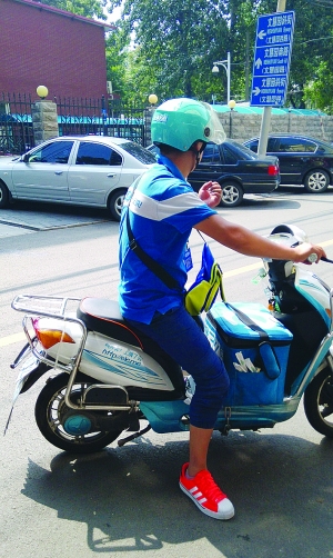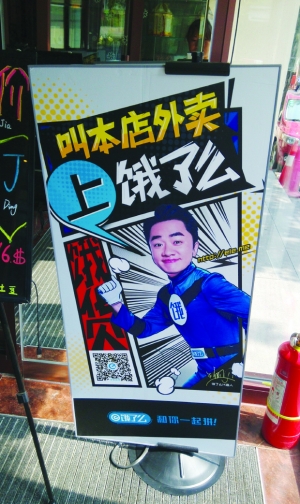 如今,在北京街頭隨處可見(jiàn)鋨了么的宣傳海報(bào)和風(fēng)雨無(wú)阻的送餐小哥。王樂(lè) 攝