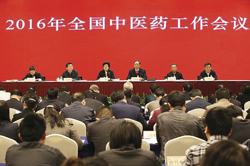 本報訊 1月14~15日,2016年全國中醫藥工作會議在北京召開。國家衛生計生委主任、黨組書記李斌出席會議并講話,要求把中醫藥寶庫深度挖掘工作列為“十三五”中醫藥工作的重頭戲。國家衛生計生委副主任、國家中醫藥管理局局長王國強作了《完善發展理念提升發展水平,全力推進中醫藥振興發展》的工作報告。