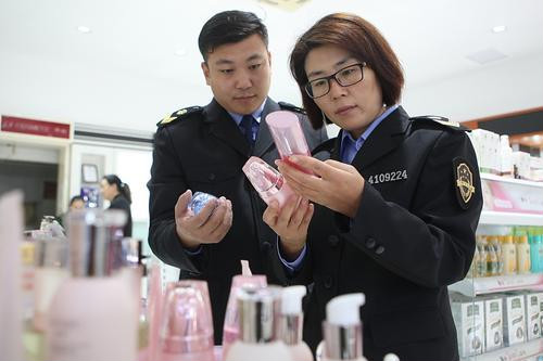 焦作市解放區(qū)食藥監(jiān)執(zhí)法人員檢查化妝品