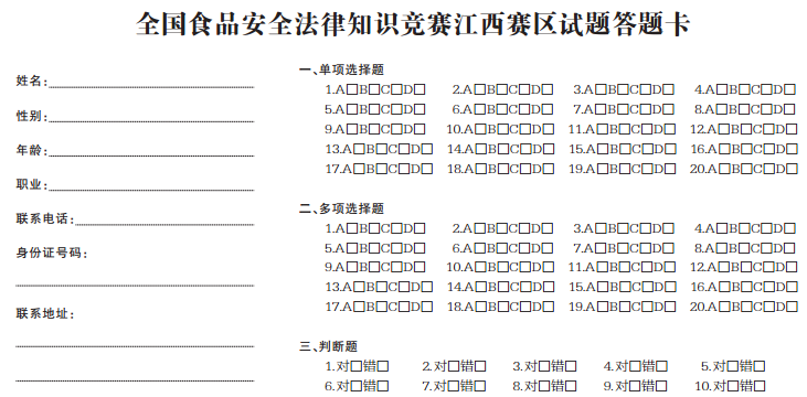 全國食品安全法律知識競賽江西賽區(qū)試題答題須知
