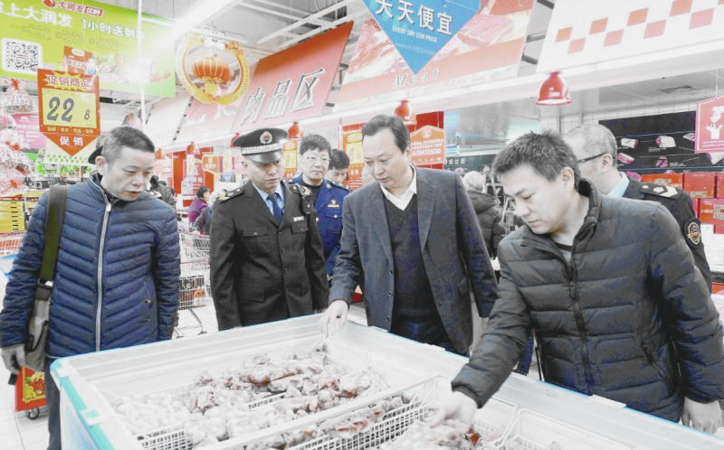 中國醫(yī)藥報記者 蔣守福 通訊員 張博林 報道 日前,為保障春節(jié)、元宵節(jié)期間的食品安全,龍巖市副市長王建生帶領市人民政府辦公室、市食品藥品監(jiān)管局、市商務局等相關部門負責人,前往轄區(qū)農貿市場、大型商場超市等食品經營場所進行檢查。