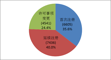 2017年,各省級(jí)食品藥品監(jiān)管部門共批準(zhǔn)境內(nèi)第二類醫(yī)療器械注冊(cè)18582項(xiàng),與2016年相比增長(zhǎng)19.5%。其中首次注冊(cè)6605項(xiàng),延續(xù)注冊(cè)7436項(xiàng),許可事項(xiàng)變更注冊(cè)4541項(xiàng)。