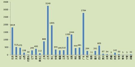 圖16.各省境內(nèi)第二類醫(yī)療器械注冊(cè)數(shù)據(jù)圖