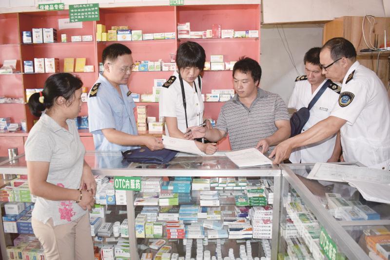 圖為廣西壯族自治區陽朔縣食品藥品監管人員對零售藥店進行檢查指導/攝影 伍章健