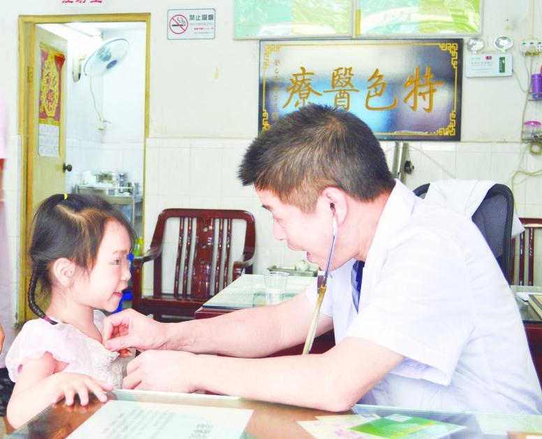 圖為涂家明在為小朋友聽(tīng)診。蔣守福 攝