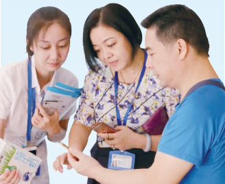 圖為深圳市局工作人員正在向市民介紹食品安全追溯信用體系APP/攝影 吳海文