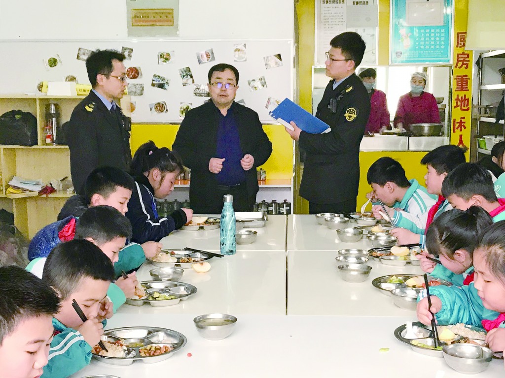圖為近日太原市小店區局營盤監管站執法人員在王村北街“好孩子小飯桌”進行檢查。