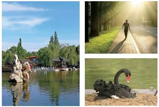 心靜了,你會發現生活中的更多美好。漫步石徑小道,金風時而襲來,碧波漾起層層漣漪。遠處,幾只天鵝嬉戲,小天鵝跟著父母振翅掠水,向往天空的翱翔;腳邊,魚翔淺底,錦鱗游泳,戲水擺尾,悠然自得。垂柳拂水,倒立水中,更見嫵媚多姿。紅花點點已經低垂紫薇枝頭,形態各異的葫蘆瓜吊在彎曲的廊道,俏皮地擋住前行的路,開始有點發黃的銀杏似乎提醒我,最美的時候還未到來。