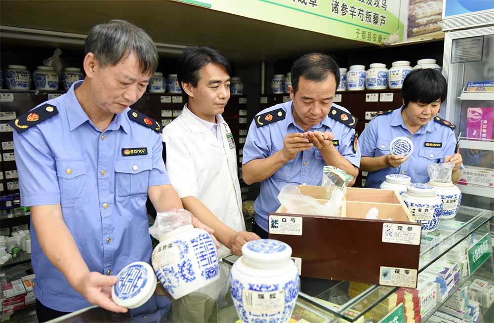 日前,江西省于都縣市場監管局組織執法人員對該縣23個鄉鎮藥店進行拉網式檢查,以確保國慶節期間人民群眾用藥安全。