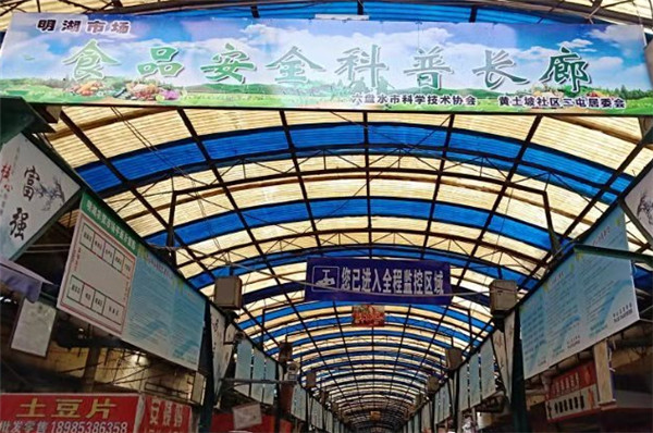圖為六盤水市創建國家食品安全示范城市以來,明湖市科協與市市場監管局聯合建設于該市鐘山區黃土坡社區明湖農貿市場的“食品安全科普長廊”