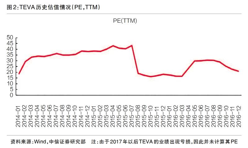其次,從國(guó)際仿制藥企業(yè)的估值來(lái)看,全球排名前二的仿制藥公司——TEVA和Mylan的估值也長(zhǎng)期保持在20X PE(TTM)左右的估值水平(見(jiàn)圖2)。經(jīng)歷過(guò)此前的調(diào)整,目前國(guó)內(nèi)仿制藥企業(yè)的估值已經(jīng)處于這一位置,有些甚至低于20X PE(TTM),筆者認(rèn)為其估值繼續(xù)下跌的空間已經(jīng)不大。同時(shí),部分仿制藥企業(yè)已經(jīng)開(kāi)始了向創(chuàng)新藥的轉(zhuǎn)型,考慮到創(chuàng)新藥企業(yè)可以享受更高的估值,我們認(rèn)為國(guó)內(nèi)藥企的估值已經(jīng)位于相對(duì)底部。