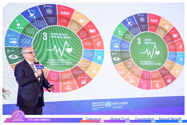 圖為世界衛(wèi)生組織駐華首席代表 Dr Gauden Galea(高力博士)發(fā)表主題演講