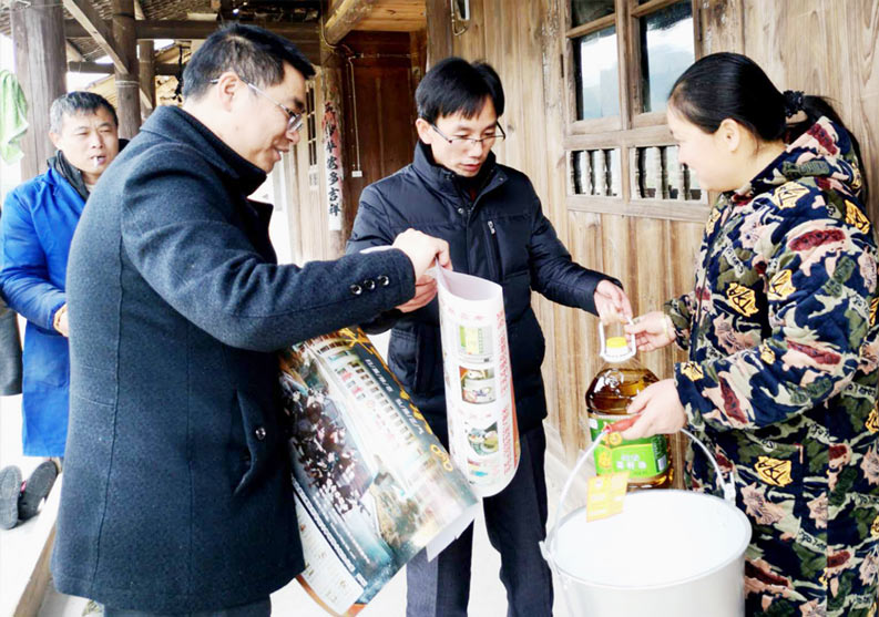 1月23日,通道侗族自治縣食品藥品工商質量監管局黨員干部來到精準扶貧的溪口鎮畫筆村,走訪慰問貧困村民、貧困老黨員,詳細了解他們的家庭生活、看病就醫、返鄉創業情況,為結對幫扶貧困戶送上慰問金和慰問物資。劉強 攝