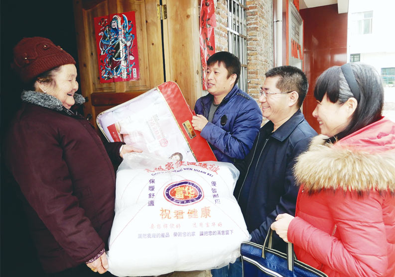 日前,禮縣食品藥品監管局工作人員來到精準扶貧幫扶村江口鎮菜地村開展幫貧扶困送溫暖活動,為群眾送去42套棉被、棉衣等越冬物資和一批米面油等過年生活用品,帶去禮縣食藥監人的一片愛心。黨海文 攝