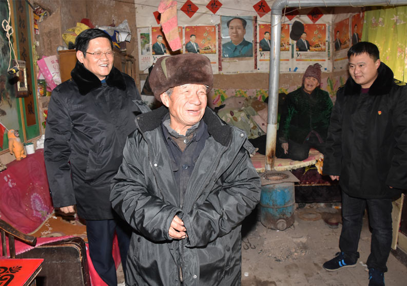 近日,開封市食安辦主任、市食品藥品監管局局長管堅勇帶領局干部一行26人冒著風雪,來到定點扶貧村通許縣連城鄉翟崗村,開展脫貧攻堅責任人“大走訪、大排查、大提升”活動,看望困難群眾,送去油、米等慰問品。一行人分組詳細了解村民生產生活狀況、扶貧政策落實等情況,并對貧困戶檔卡資料進行查漏補缺,做到扶貧政策“應享盡享”、不落一戶一人。韓吳琦 攝