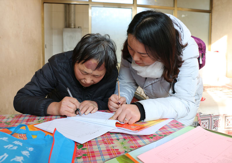 祁縣市場和質量監管局幫扶責任人近日來到結對幫扶村賈令鎮前營村向貧困戶送上春聯、面粉、衣服、藥品等慰問品,鼓勵他們堅定信心,克服困難,早日脫貧。圖為幫扶責任人入戶詳細了解貧困戶現狀。張瑾 攝