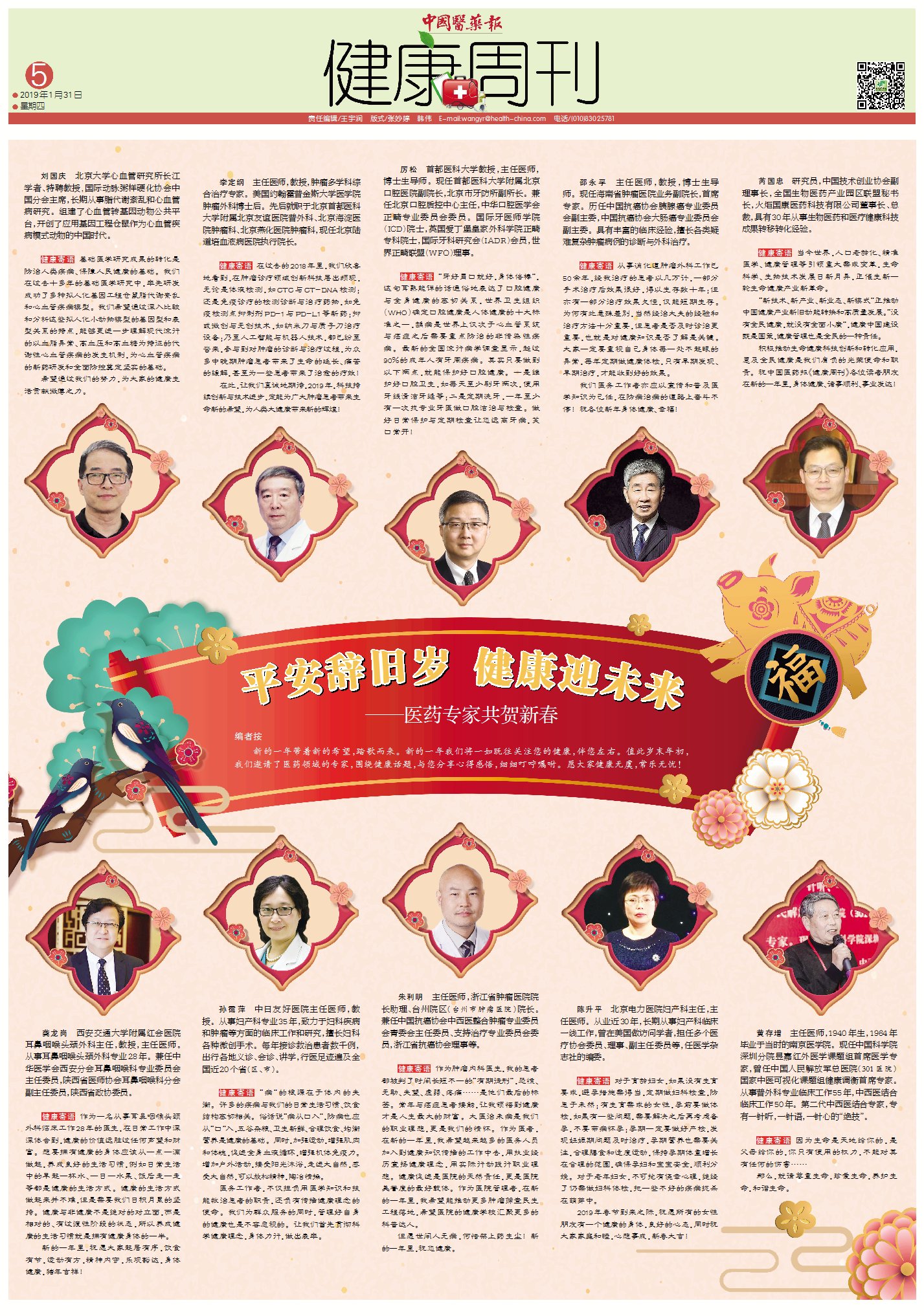 積極推動生命健康科技創新和轉化應用,惠及全民健康是我們肩負的光榮使命 和職責。祝中國醫藥報《健康周刊》各位讀者朋友在新的一年里,身體健康、諸事順利、事業發達!