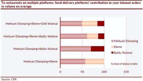 CRR報告顯示,美團(tuán)與大眾點(diǎn)評合并產(chǎn)生協(xié)同效應(yīng),帶來流量,促進(jìn)平臺運(yùn)營效率提升。2015年10月,美團(tuán)與大眾點(diǎn)評正式達(dá)成戰(zhàn)略合作,合并后的美團(tuán)強(qiáng)強(qiáng)聯(lián)手,實現(xiàn)優(yōu)勢互補(bǔ)和戰(zhàn)略協(xié)同,產(chǎn)生了1+1>2的共贏效應(yīng)。使用多個外賣平臺運(yùn)營餐廳的老板稱,相比其他平臺,美團(tuán)為其帶來了最多的流量。一家BBQ餐廳老板告訴CRR,“美團(tuán)的人氣已經(jīng)很高了,現(xiàn)在通過和大眾點(diǎn)評網(wǎng)合作,我們餐廳的知名度提高了,因此我們從美團(tuán)的訂單也在增加”。
