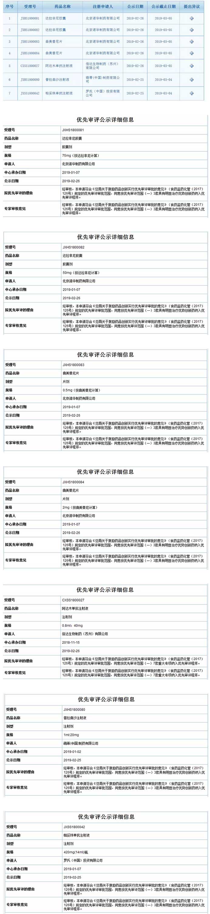 2月25-26日,藥審中心網站公示了新一批擬納入優先審評的品種名單,其中包括4個具有明顯治療優勢的創新藥和1個重大專項品種。