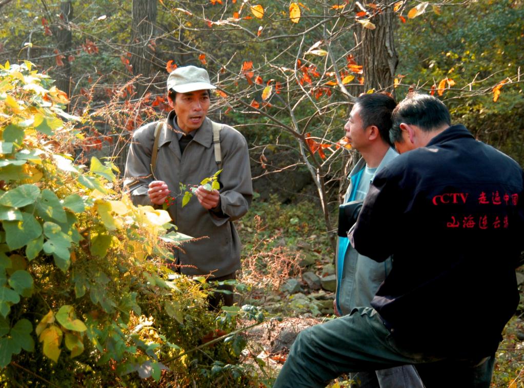 中央電視臺《走遍中國·山海連云港》攝制組專訪吳舟,聽他講述云臺山中草藥的神奇故事。