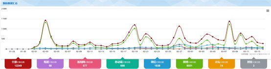 以1月27日~3月14日17時(shí)為監(jiān)測(cè)時(shí)間段,如上圖所示,輿情走勢(shì)呈“波浪式”發(fā)展特征,網(wǎng)民關(guān)注度遠(yuǎn)高于媒體關(guān)注度。