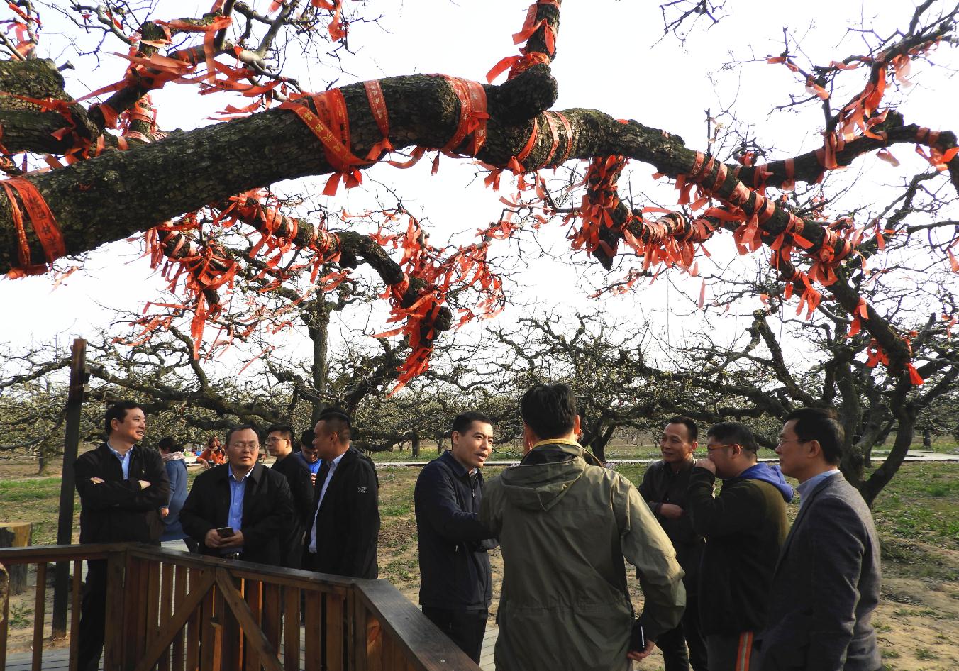 圖為國家藥典委員會一行參觀碭山縣梨樹王風景區。 記者 蔣守福 攝