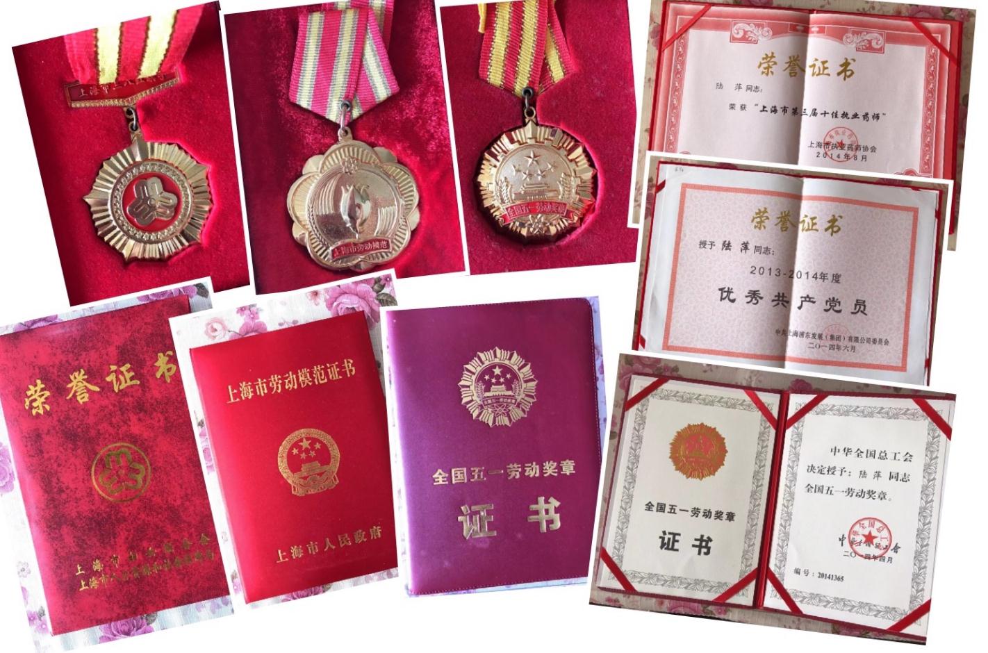 2014年,陸萍榮獲全國五一勞動(dòng)獎(jiǎng)?wù)拢陿s獲“上海市第三屆十佳執(zhí)業(yè)藥師”稱號(hào)。2015年,榮獲“上海市勞動(dòng)模范”稱號(hào)。2016年,陸萍所在工作室被授予“浦東新區(qū)勞模創(chuàng)新工作室”稱號(hào)。