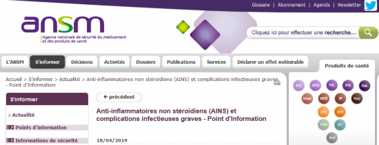 法國國家藥品和保健產品安全署委托圖爾和馬賽藥物警戒中心進行一項調查,結果顯示,患者在發燒、頭痛或喉嚨痛等情況下,經常服用酮洛芬和布洛芬類消炎藥,但用藥不慎可能導致感染并發癥,嚴重或致截肢甚至死亡,公眾務須提高警惕。