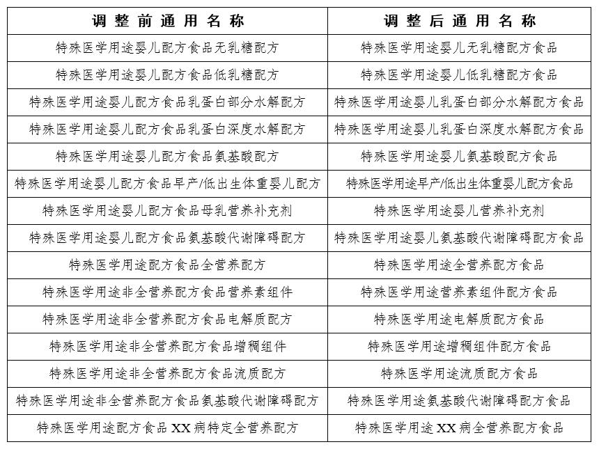 國(guó)家市場(chǎng)監(jiān)管總局:特殊醫(yī)學(xué)用途配方食品產(chǎn)品通用名稱有調(diào)整