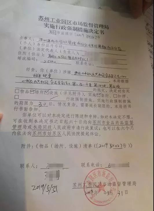 5月31日上午,蘇州市工業園區市場監督管理局食品藥品安全稽查大隊執法人員到喜茶圓融時代店檢查,發現店堂內及操作臺上飛蟲很多,現場對該店開具了停業整改的通知書。同日蘇州喜茶永旺夢樂城店也被要求整改。