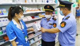 7月初旬,江西連降大雨暴雨。近日,江西省永豐縣市場監管局恩江分局對轄區內藥品經營使用單位開展梅雨季節溫濕度控制情況專項檢查,重點檢查霉變藥品。圖為該分局工作人員在一藥店檢查。(郭平德 攝)