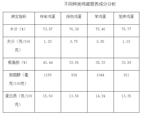 表格中數(shù)據(jù)來(lái)源:朱云鵬,崔春利,王蘭嬌,韓宛君,侯俊財(cái). 哈爾濱市售雞蛋品質(zhì)及營(yíng)養(yǎng)成分分析[J]. 食品工業(yè),2017,38(5):289-292.