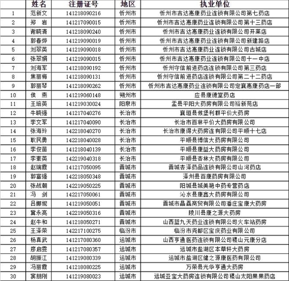 撤銷執業藥師注冊證人員名單(來源:山西省藥監局)