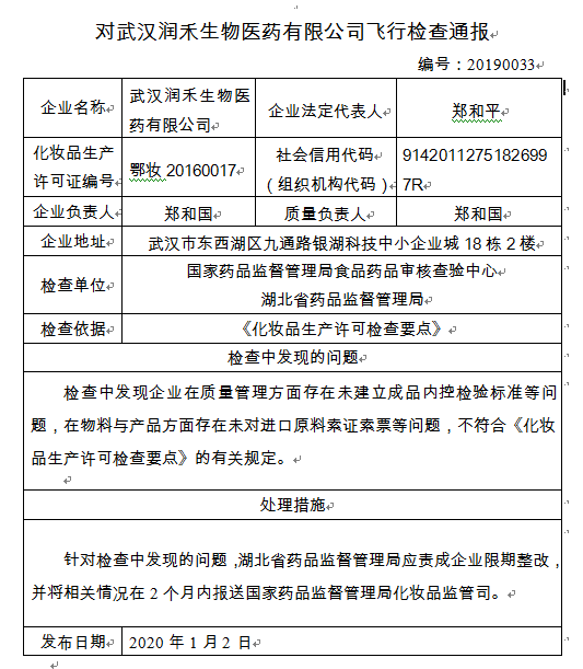 飛檢通報:對武漢潤禾生物醫(yī)藥有限公司飛行檢查通報