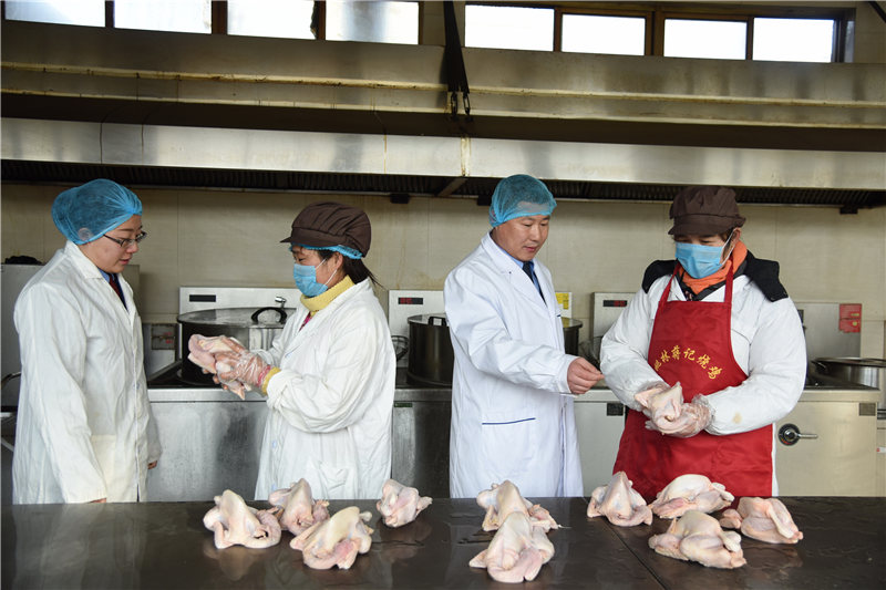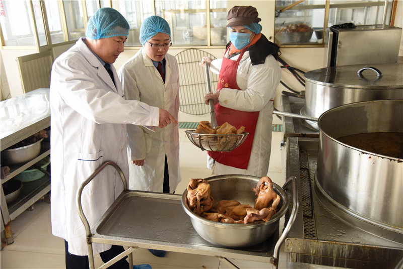 春節臨近,江蘇省連云港市東海縣市場監管局組織衛生、公安等部門形成聯合行政執法隊,深入全縣市場、餐飲行業、食品加工企業等地,開展“拉網式”檢查。(張正友 攝)
