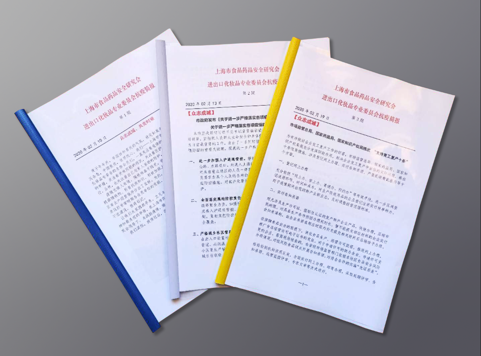 “讓我們大家攜起手來,立足本職,講求科學,共克時艱,用最專業(yè)的精神和最務實的舉措,在上海市藥品監(jiān)督管理局和上海市食品藥品安全研究會領導下,為戰(zhàn)勝疫情,繼續(xù)貢獻自己應有的力量。”在2月10日的第一期《抗疫簡報》中,上海市食品藥品安全研究會進出口化妝品專委會(以下簡稱進出口化妝品專委會)發(fā)出了這樣的集結令。
