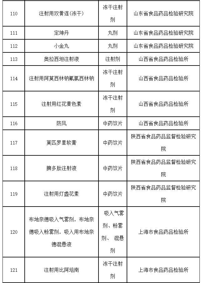 2019年國家藥品抽檢品種目錄