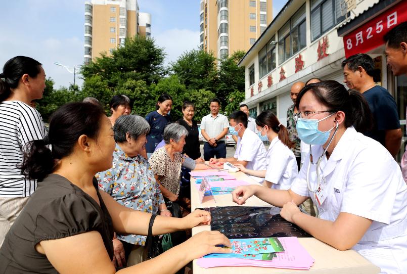 圖為8月25日,嶧城區殘疾人聯合會組織醫務人員走進鷺鳴山莊社區為居民進行義診宣傳。(吉喆 攝)