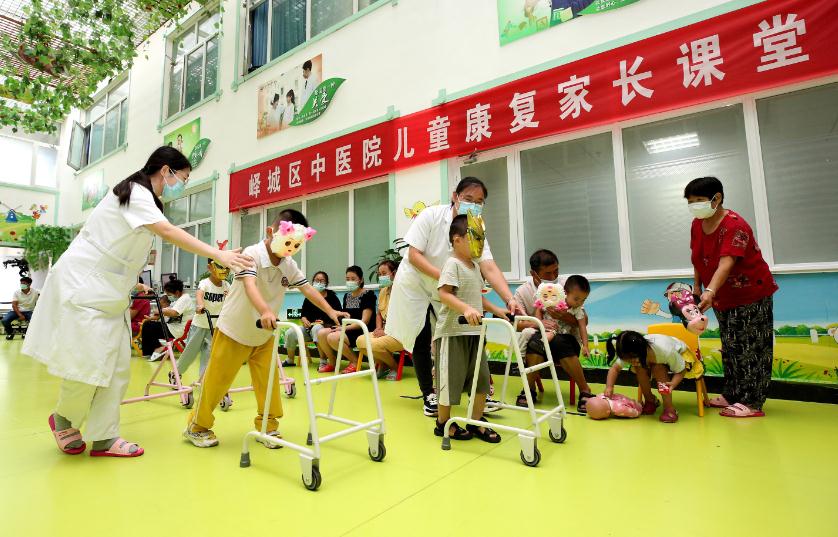 圖為8月25日,在嶧城區中醫院,康復治療師對殘疾兒童進行康復訓練。據悉,嶧城區殘疾人聯合會為家庭困難的殘疾兒童提供了免費康復治療。(吉喆 攝)