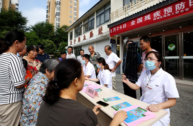 圖為嶧城區殘疾人聯合會組織醫務人員走進鷺鳴山莊社區為居民進行義診宣傳。(吉喆 攝)