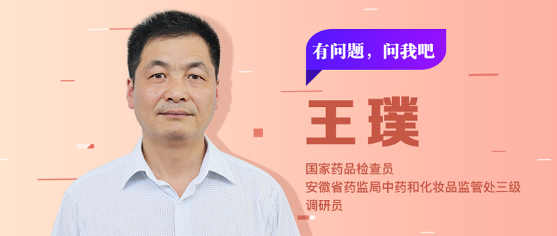 大家好,我是國家藥品檢查員王璞。先后畢業于安徽省安慶市衛生學校、山東醫科大學藥學函授學院藥學專業,目前就職于安徽省藥監局中藥和化妝品監管處,擔任三級調研員職務。我一直從事藥學工作,在醫療機構、衛生局、藥監局從事藥品管理和監管工作38個年頭。