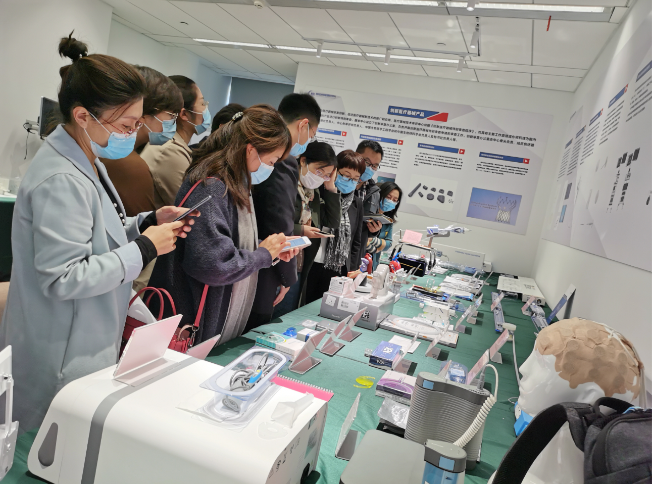企業和媒體代表正在了解器審中心近年審評的創新醫療器械產品。 落楠攝