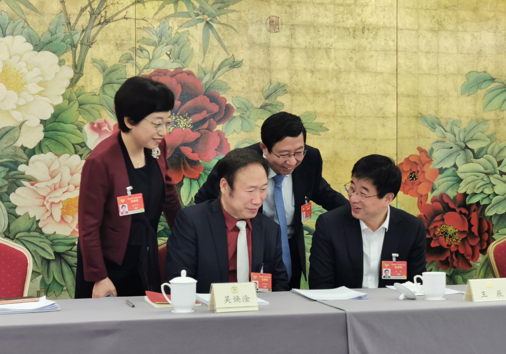 “三八”婦女節前夕,全國政協醫藥衛生界別的女委員們在小組會召開之前討論政府工作報告。 (肖新月 供圖)