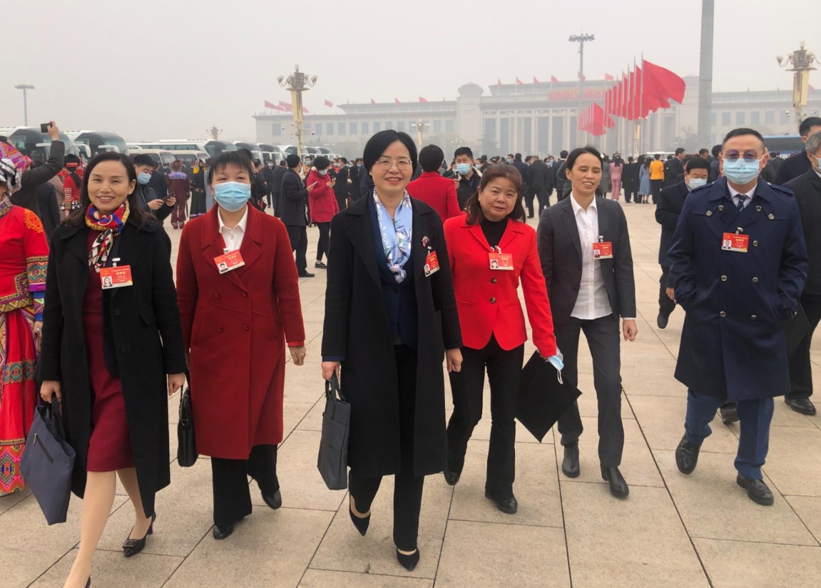 3月5日,第十三屆全國人民代表大會第四次會議在北京人民大會堂開幕。圖為湖南團的代表們步入會場。(徐遠冰 攝)
