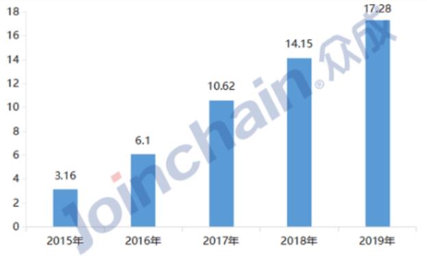 圖1 2015~2019年中國醫(yī)用霧化器市場規(guī)模(億元)