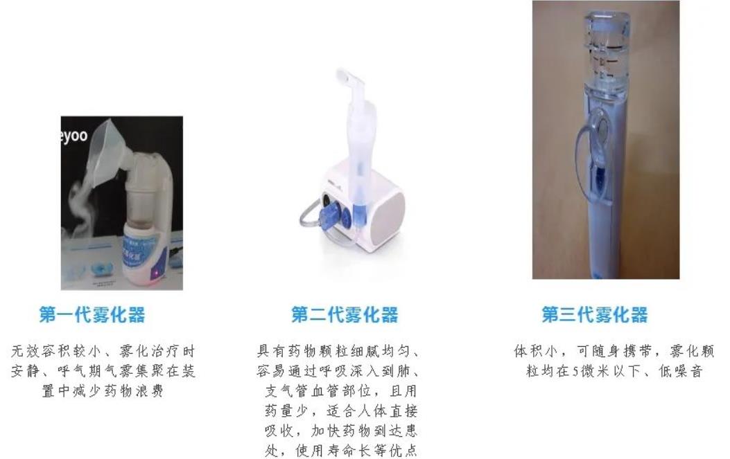 隨著技術(shù)的發(fā)展,目前用于哮喘治療的霧化器產(chǎn)品已從第一代升級到第三代,這三代產(chǎn)品呈現(xiàn)出霧化器三個不同的發(fā)展階段。在醫(yī)學上,超聲霧化器被稱為第一代霧化器,壓縮式霧化器為第二代霧化器,微網(wǎng)式霧化器為第三代霧化器。