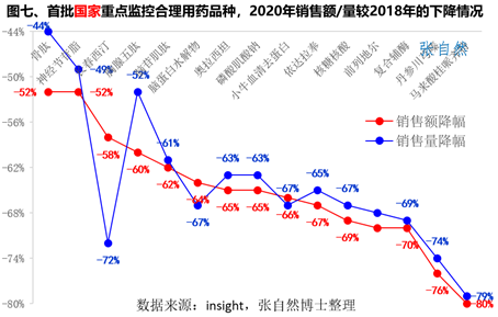 重點監(jiān)控合理用藥藥品目錄脫胎于地方醞釀已久的輔助用藥目錄,所以在國家版出臺之前,各地就對輔助用藥進行了多種限制,使其銷售逐漸下滑,國家版出臺后,下降更快。