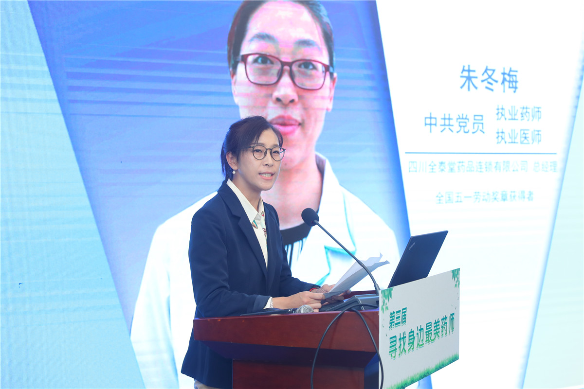 圖為四川省代表講述本省推薦參加活動的藥師事跡。