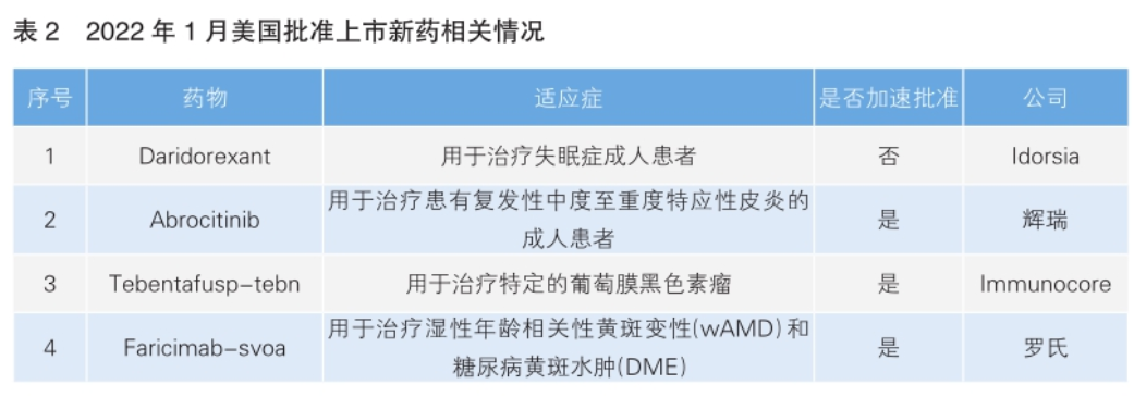 1月份,美國批準(zhǔn)上市4款新藥,其中3款獲得加速批準(zhǔn)。除Abrocitinib外,其余3款均為全球首次獲批(詳見表2)。