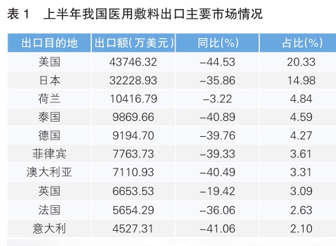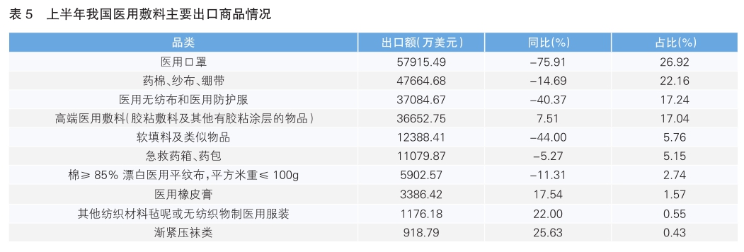 上半年我國醫(yī)用敷料出口情況分析